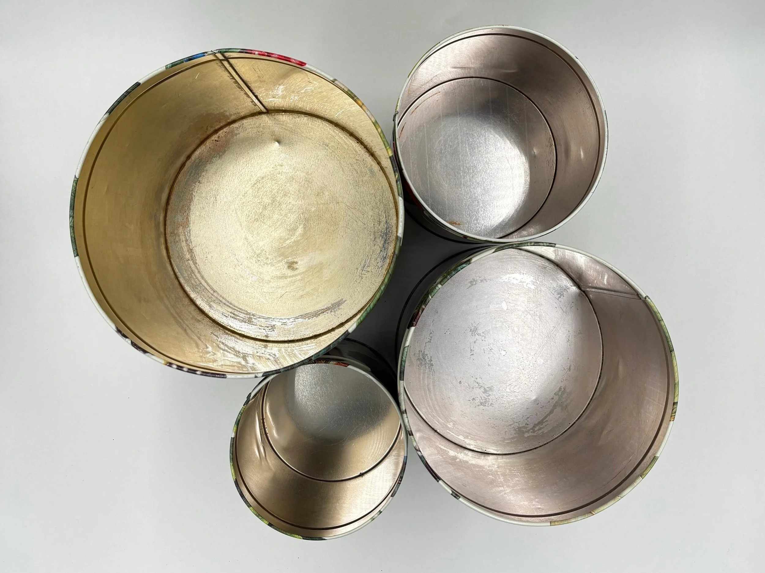 This adorable set of 4 nesting canisters is called "Berries" and was sold by Department 56. The smallest features blackberries, next up features boysenberries, next is raspberries and the largest features strawberries. They are in good condition with signs of wear and patina from usage, however they have lots of life left in them. See photos for details.